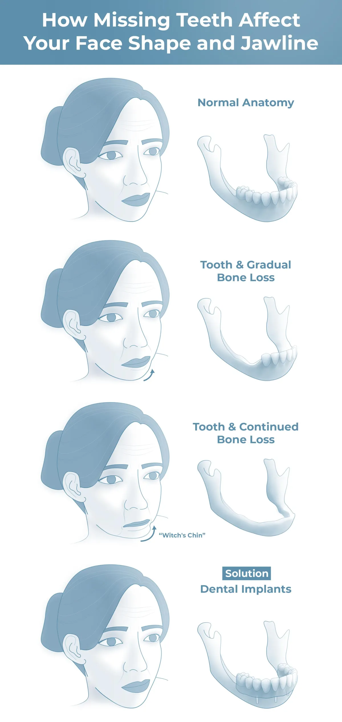 If there isn't enough bone left, you will not be eligible for dental implants.